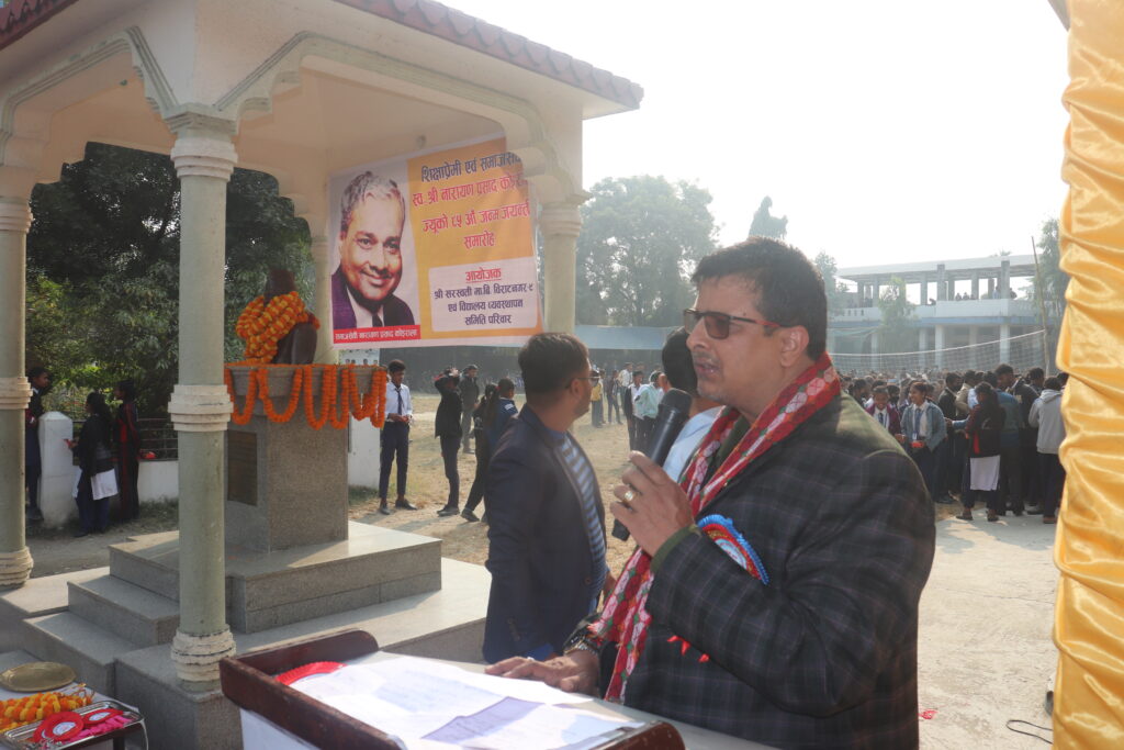 मेयर कोइरालाले शिक्षाको विकासमा महानगरपालिका गम्भीर रहेको बताए । कार्यक्रममा विराटनगर वडा नम्बर ९ का वडाध्यक्ष विश्वनाथ भगत, विराटनगर महागरपालिकाका शैक्षिक प्रशासन महाशाखा प्रमुख दुर्गाप्रसाद खतिवडा, विद्यालयका प्रअ योगेन्द्र कार्की, पूर्वप्रअ डिल्ली पोखरेल, विद्यालय व्यवस्थापन समितिकी सदस्य अनुजा कोइरालालगायतले सरस्वती विद्यालयको स्नरोन्नति र विकासमा नारायणप्रसाद कोइरालाको योगदान अतुलनीय रहेको बताएका थिए ।