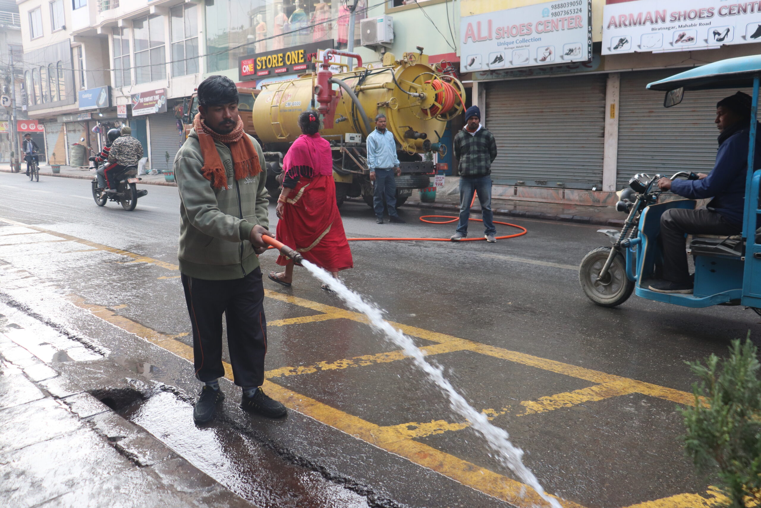 पार्किङ निषेधित सडक पखालेर चिटिक्क पार्दै